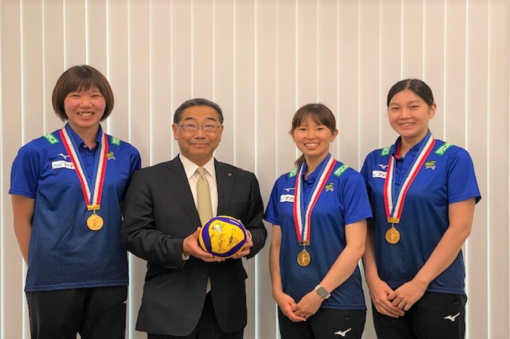 佐賀県と兵庫県を本拠地とする、女子バレーボールチーム久光スプリングス(V.LEAGUE DIVISION1所属)の大竹里歩選手、栄絵里香選手、今村優香選手がシーズン終了報告のため来訪されました。