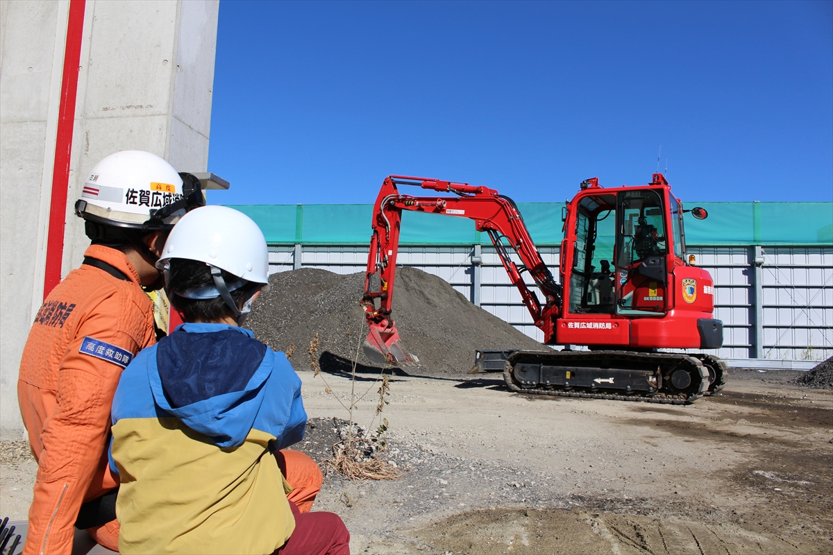 また、佐賀広域消防局の協力のもと、災害時に活躍する無人重機(バックホウ)の遠隔操作体験も実施。