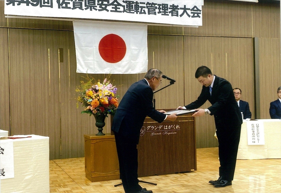2025年11月7日(金)に開催された「第49回佐賀県安全運転管理者大会」において、弊社から代表者1名が表彰式に参加し、日頃の安全運転に対する取り組みが評価されました。