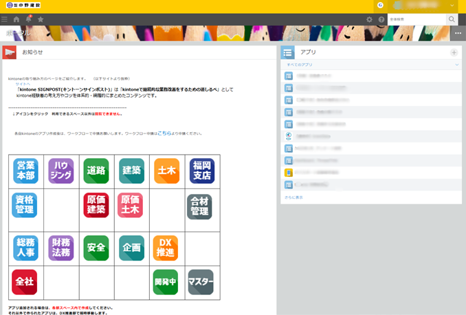 kintoneは、プログラミングの知識がなくても、日々の業務に合わせたアプリを作成できるクラウドサービスです。 中野建設では、紙やExcelで管理していた工事情報や各種書類をデータ化し、どこからでも同じ情報をリアルタイムで共有できる環境を整えています。これにより、業務の進捗状況や情報の所在が明確になり、属人化の解消や引き継ぎの円滑化、業務全体の「見える化」を実現しています。 また、現場の声を反映しながらシステムを柔軟に改善できる点も大きな特長で、実際の業務フローに即した仕組みづくりが可能です。感覚的に操作でき、現場主導での改善を後押しするツールとして、社内での活用が着実に広がっています。現在は主に『資格管理』のシステムにて利用しています。