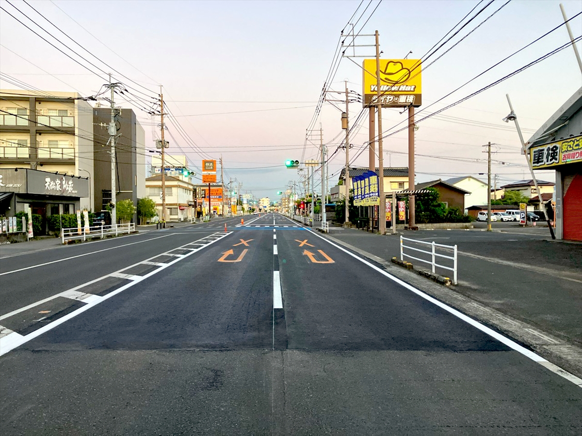 本工事は、熊本市内から佐大医学部交差点まで延びる国道208号(総延長116.8km)のうち、佐賀県が管理する“南部バイパス”区間における舗装補修工事。片側2車線の道路で、今回補修する区間は交通量が特に多い上、舗装の老朽化が激しいため、利用者が安心して通行できるよう、切削オーバーレイにて舗装を補修した。 この区間は県内でも事故発生が多い道路の一つであるため、電光掲示板による工事予告を徹底したり、路面切削時は10cm段差が発生するため、24時間営業の店舗など車両の乗り入れに支障がないよう発砲スチロールを敷設し、段差の解消を図るなど、安全管理に努めた。